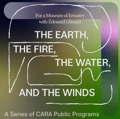 Ce printemps, CARA présente « La Terre, le Feu, l'Eau et les Vents : Pour un Musée de l'Errance avec Édouard Glissant » — la première exposition américaine de la collection d'art personnelle du poète et philosophe martiniquais Édouard Glissant (1928-2011) .